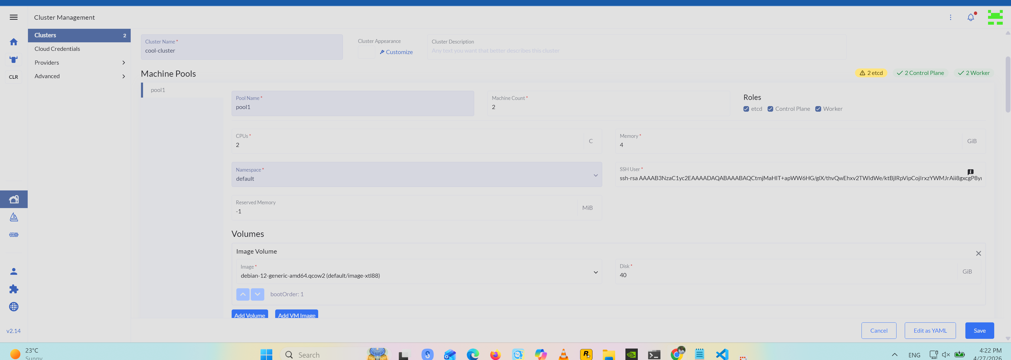 ۲. یکپارچگی با Rancher Harvester از روز اول با Rancher طراحی شده که کار میکنه. این یعنی میتونید مستقیماً از داخل Harvester، کلاسترهای Kubernetes مدیریتشده (RKE2/K3s) بسازید — بدون نیاز به ابزار جداگانه یا تنظیمات دستی اضافه.