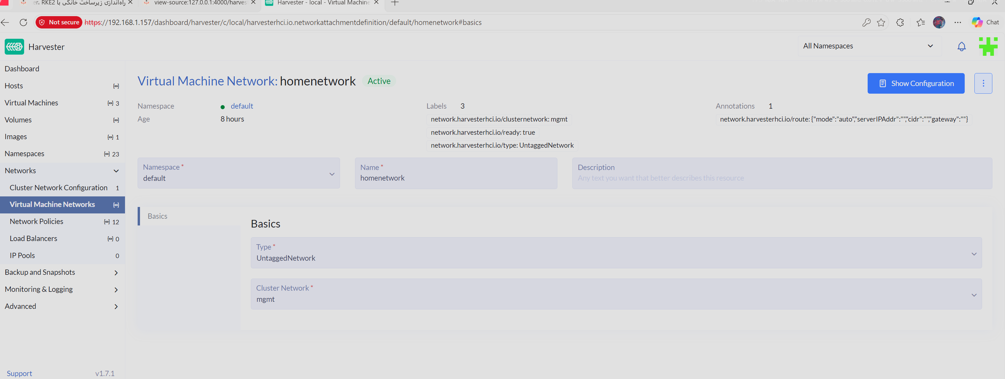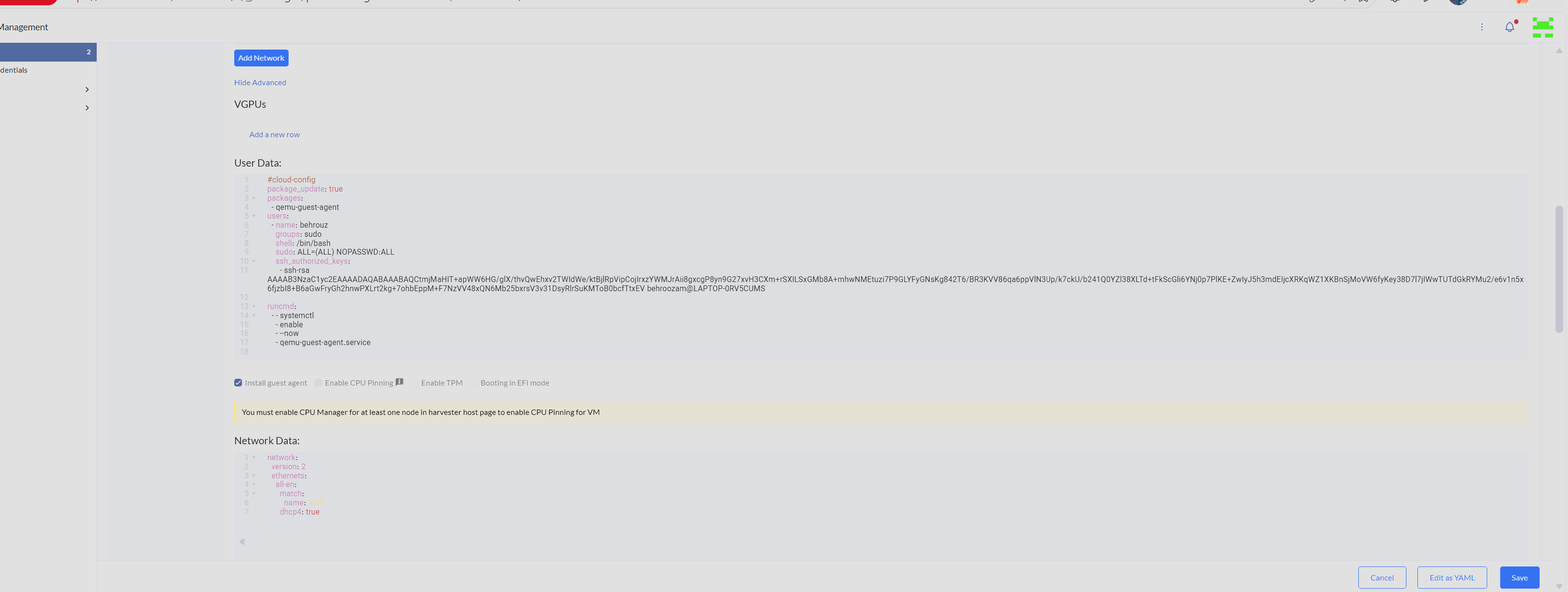 چون من یه کلاستر single-node Harvester دارم، باید این مقادیر رو به تنظیمات YAML کلاستر اضافه کنم تا توی مرحله bootstrap گیر نکنه:
