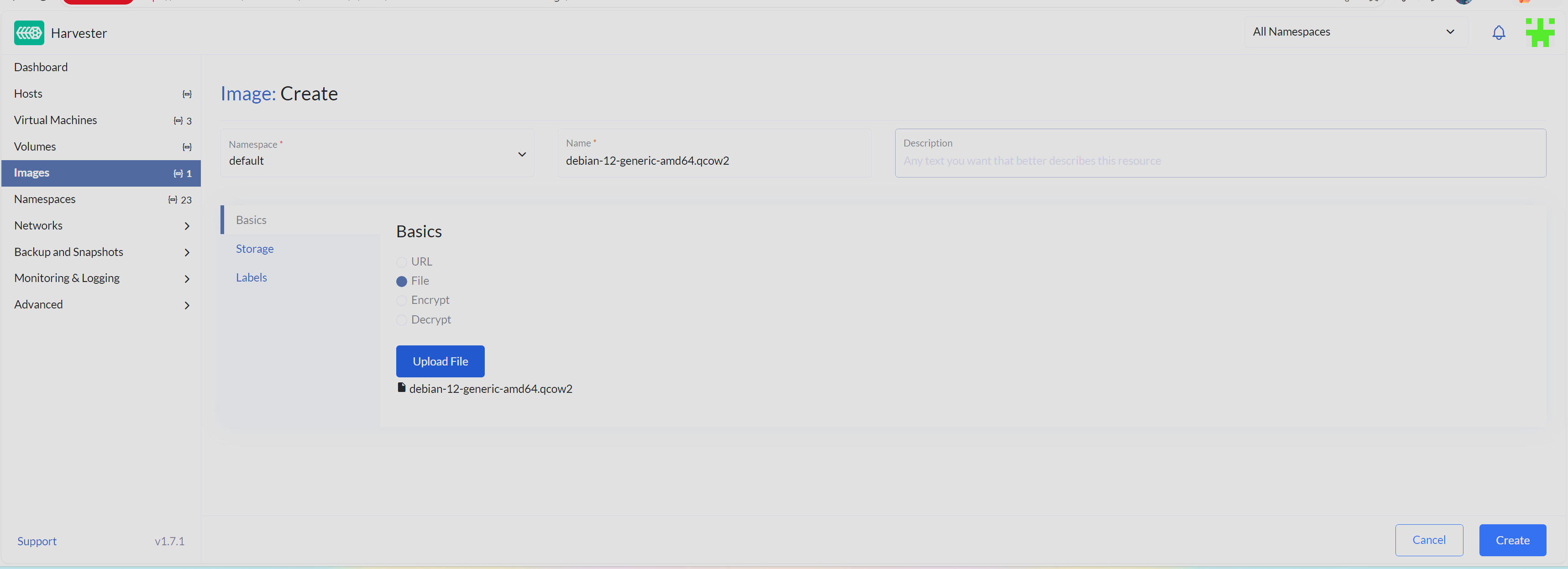 بعد از دانلود، این ایمیج رو از تب Images در Harvester UI به صورت file آپلود کنید.