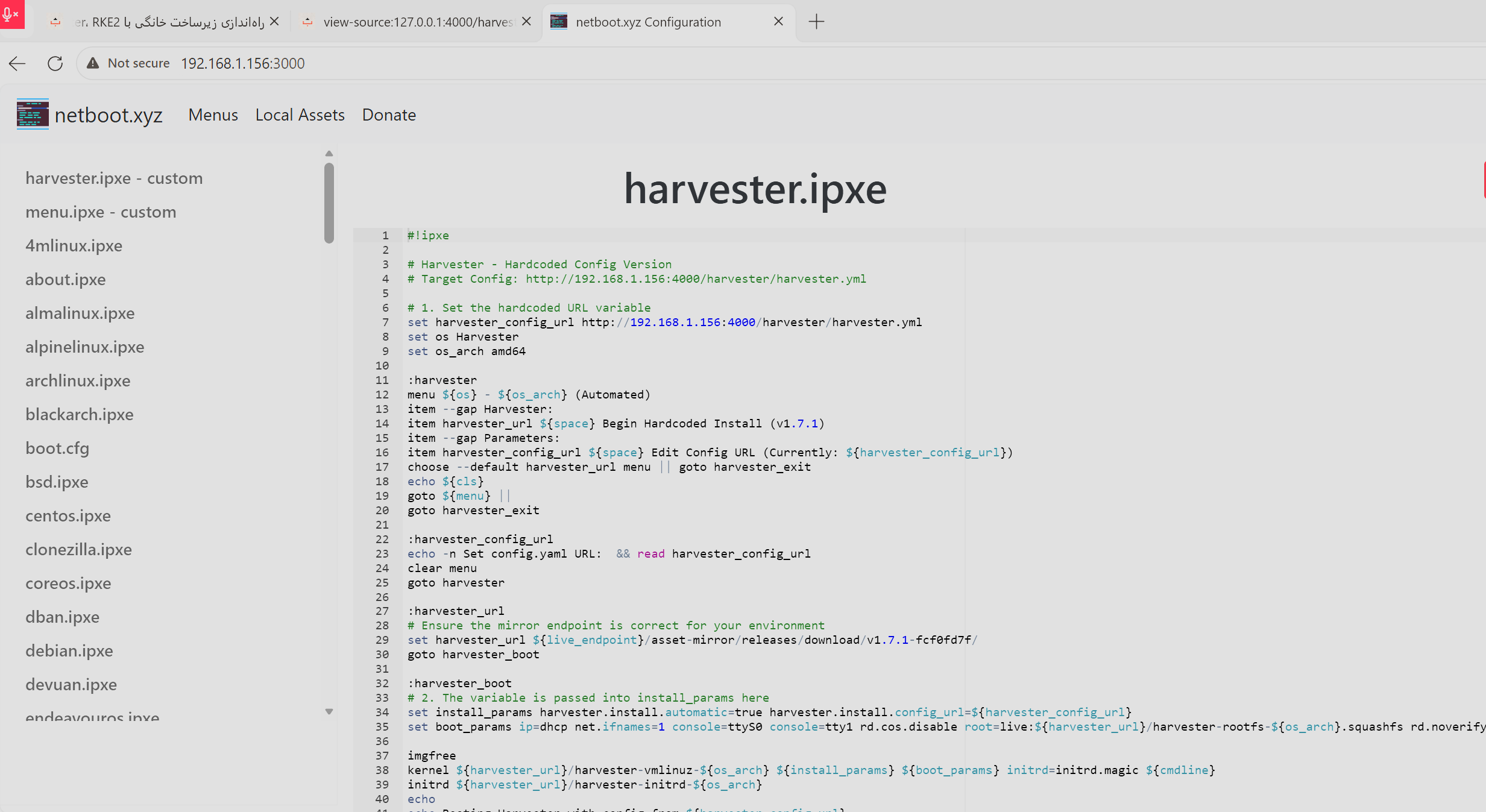 - تغییر کانفیگ iPXE مخصوص Harvester